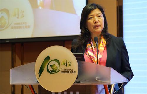 環境標志認證實施機構中環聯合認證中心張小丹總經理介紹了中國環境標志產品作為政府綠色采購的技術保障,環保部已先后頒布了100項環境標志標準,已有4000余家企業生產的約40余萬種規格型號的產品獲得了中國環境標志認證,有利的支撐了政府綠色采購工作。據不完全統計,2015年環境標志產品政府采購中辦公家具共減排1482.26噸揮發性有機物(VOCs),減排33.1噸甲醛;電子類主要辦公用品共減排620.259噸二氧化硫,620.259噸氮氧化物,97.706噸煙塵;復印紙共減排1590.59噸化學需氧量、15.91噸總磷和159.1噸氨氮,為節能減排工作做出了巨大的貢獻。