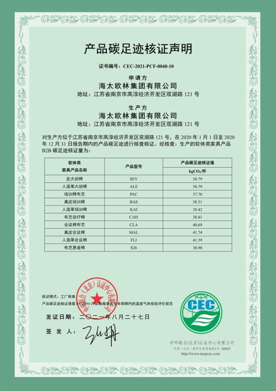 下一篇:海太歐林集團有限公司-產(chǎn)品碳足跡證書-CEC-2021-PCF-0040-9-軟體類家具