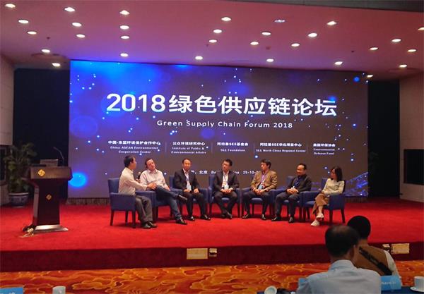 2018年10月25日,由中國-東盟環境保護合作中心、公眾環境研究中心、阿拉善SEE基金會、阿拉善SEE華北項目中心、美國環保協會聯合主辦的2018綠色供應鏈論壇在北京召開,綠色消費與綠色供應鏈聯盟受邀出席本次會議。中國-東盟環境保護合作中心副主任張潔清、生態環境部綜合司生態環境政策處處長李華友、阿拉善SEE生態協會會長錢曉華、APPLE公司副總裁葛越等來自環保團體和跨國公司的品牌公司等嘉賓在論壇中就企業如何在供應鏈實現綠色運行和綠色發展做了精彩的發言和交流。