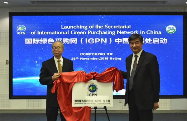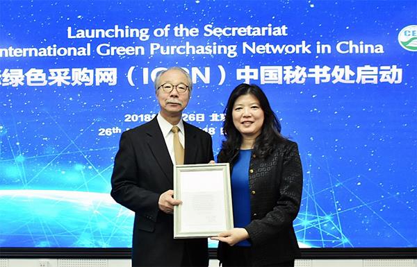 2018年11月26日,藉APEC典型綠色產品能力建設項目研討會——環境標志與綠色消費在京召開之際,國際綠色采購網絡(IGPN)中國秘書處啟動活動在京舉行。在與會領導和專家的見證下,IGPN主席中原秀樹先生將秘書處授權證書正式交給中環聯合認證中心(CEC)。