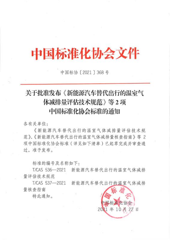 近日,由中環(huán)聯(lián)合(北京)認證中心有限公司和中汽數(shù)據(jù)有限公司牽頭,聯(lián)合南開大學、比亞迪汽車工業(yè)有限公司、戴姆勒大中華區(qū)投資有限公司、重慶長安汽車股份有限公司、一汽-大眾汽車有限公司等單位共同參與制定的《通過新能源汽車替代出行實現(xiàn)溫室氣體減排量評估技術規(guī)范》(TCAS 536—2021)和《通過新能源汽車替代出行實現(xiàn)溫室氣體減排量核查指南》(TCAS 537—2021)2項團體標準正式發(fā)布。