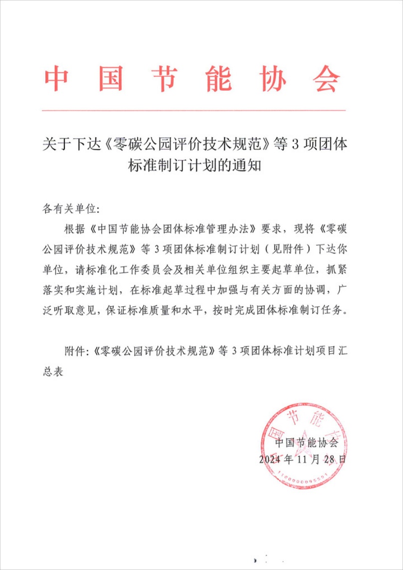 近日,中國節能協會發布“關于《零碳公園評價技術規范》等3項團體標準制定計劃的通知”。中環聯合負責起草的《零碳公園評價技術規范》成功獲批立項。