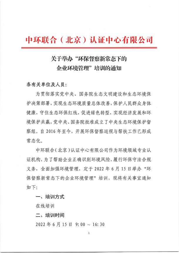 6月15日環(huán)保督察新常態(tài)下的企業(yè)環(huán)境管理培訓(xùn)通知