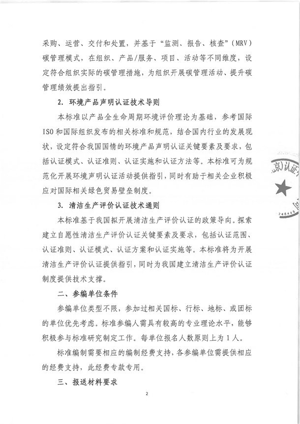 《碳管理體系 要求及使用指南》、《環(huán)境產(chǎn)品聲明認(rèn)證技術(shù)導(dǎo)則》和《清潔生產(chǎn)評價認(rèn)證技術(shù)通則》等國家市場監(jiān)督管理總局認(rèn)證認(rèn)可行業(yè)標(biāo)準(zhǔn)參編單位邀請函
