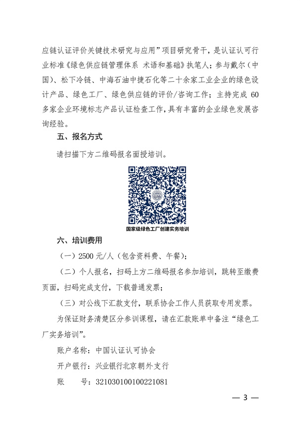 中國認證認可協會培訓部關于舉辦“國家級綠色工廠創建實務培訓”的通知