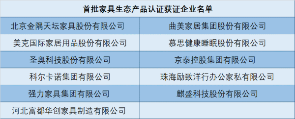 會上還發(fā)布了家具生態(tài)產(chǎn)品認證技術規(guī)范的團體標準,并為首批獲證企業(yè)頒發(fā)了生態(tài)產(chǎn)品認證證書。